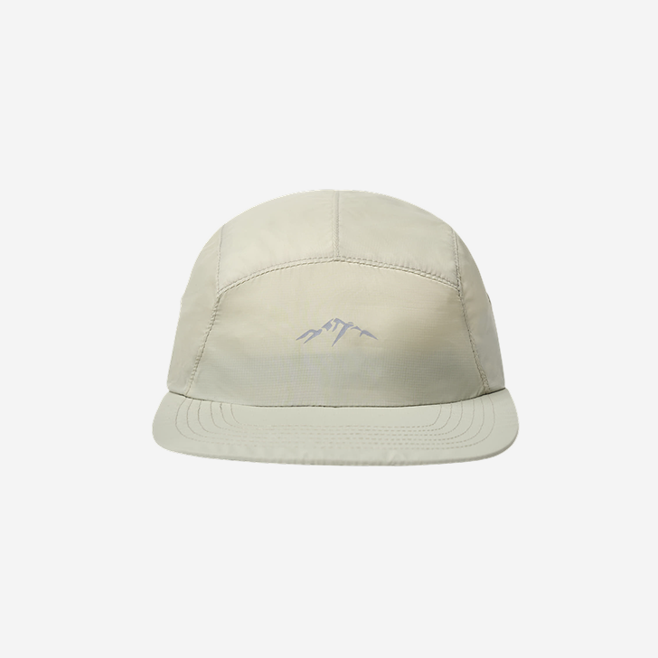 회색 아이보리 빛의 세련된 스포츠 캡. 과하지 않은 컬러가 어떤 러닝 룩에도 자연스럽게 녹아든다.